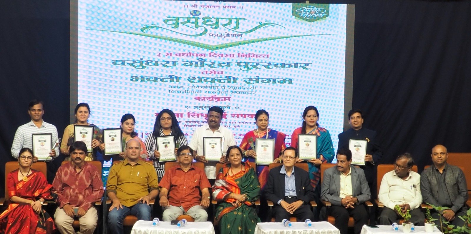 प्रिया सावंत, शैलजा लोखंडे, स्नेहल जाधव, अजित माने, सुनील रोट्टी, मेधा जेरे, प्रसाद शिवरकर, विठ्ठल सूर्यवंशी, डॉ. दत्तात्रय शिंदे यांचा मान्यवरांच्या हस्ते वसुंधरा पुरस्काराने गौरव करण्यात आला.